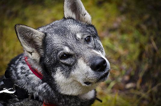 Alva, en klok, trevlig och fortfarande lycklig jämthund. Foto: Madeleine Lewander